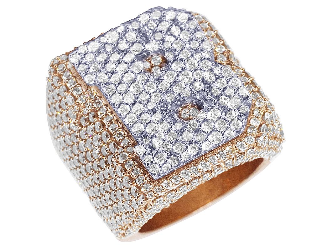 Lavish and bold this “B” initial ring is for the one who appreciates intricacy and distinction. Crafted in warm 10K Rose-White Gold, this ring features round diamonds. Gorgeous genuine diamonds are prong-set on the ring radiant with VS1-VS2 clarity and I-J color. This ring captivates affluently 9 CT diamonds. Its design features a solid back for extra support to withstand everyday wear and tear. This 26MM weighs approx 31.2 grams. A piece with a style statement, this beautiful ring will turn several heads. A perfect choice for a man with style and sophistication.