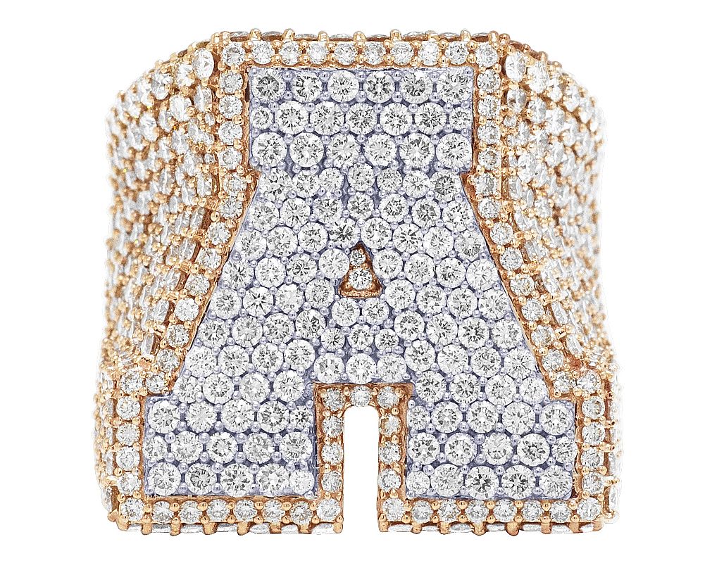 “A” Initial EGL Certified VVS 8.8CT Diamond Ring 10k Rose Gold 27MM