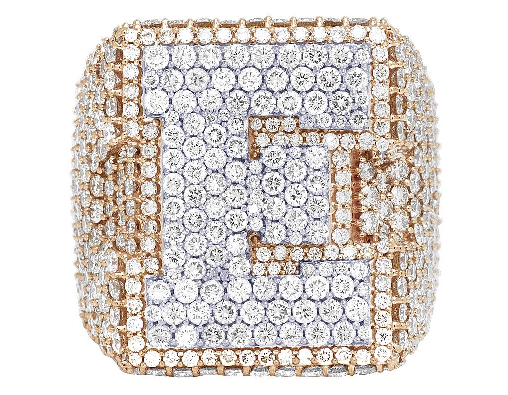 “Q” Initial EGL Certified VVS 8.8CT Diamond Ring 10k Rose-White Gold 26MM