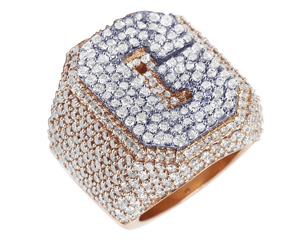 “J” Initial 7.9CT Diamond Ring 10k Rose Gold 25MM