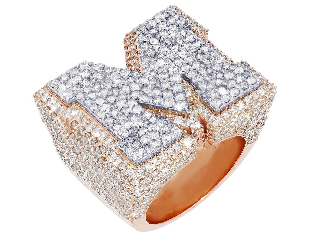 “M” Initial EGL Certified VVS 10CT Diamond Ring 10k Rose-White Gold 30MM