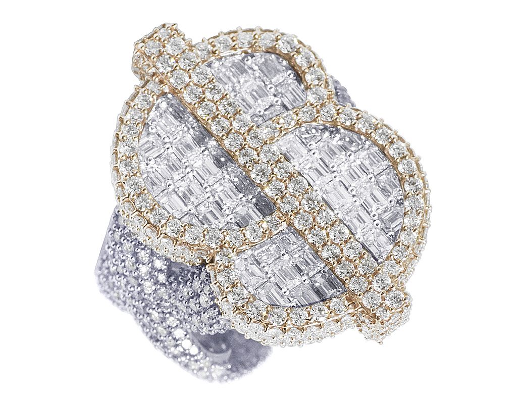 $ Sign EGL Certified VVS Baguette Diamond 9.2CT 10k Yellow Gold 27mm