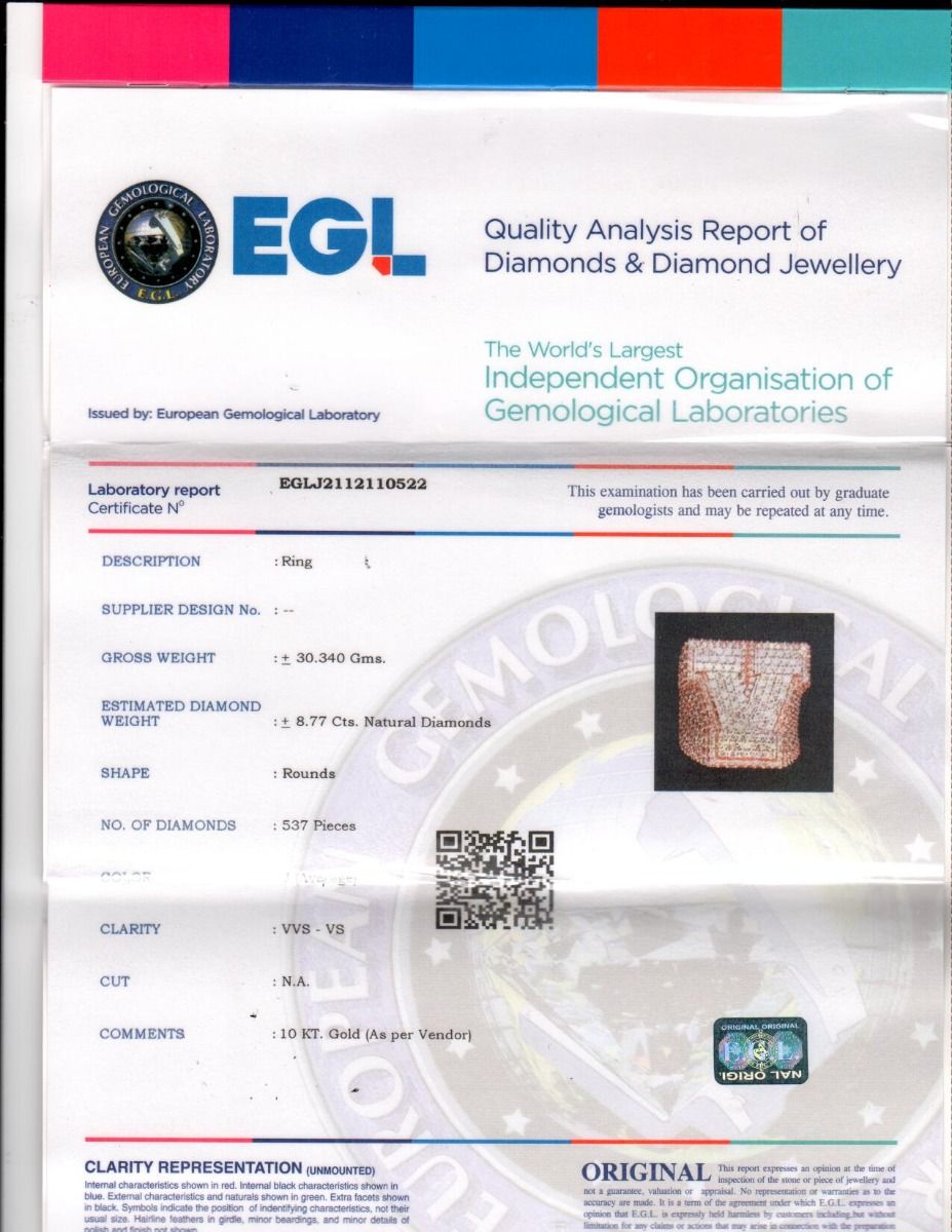 “Z” Initial EGL Certified VVS 8.8CT Diamond Ring 10k Rose-White Gold 26MM