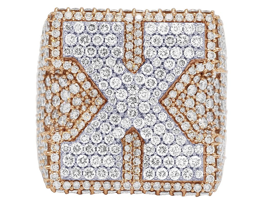 “X” Initial EGL Certified VVS 9.1CT Diamond Ring 10k Rose-White Gold 36MM