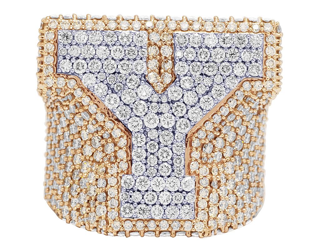 “Y” Initial EGL Certified VVS 8.9CT Diamond Ring 10k Rose-White Gold 30MM
